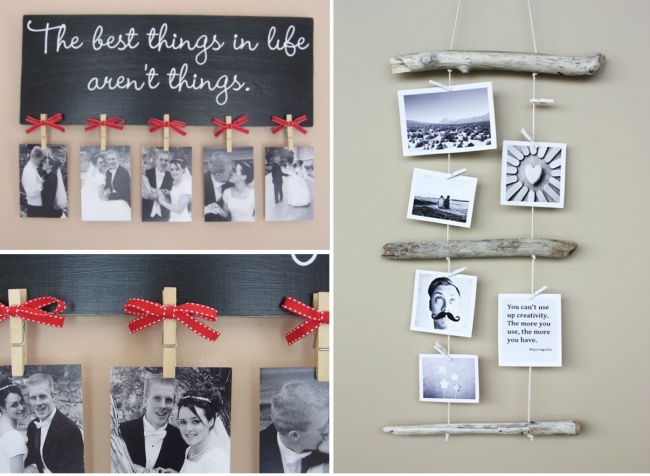 Photo albums are great, but some pictures are to be looked at constantly. Photos can become a wonderful addition to your interior design if you arrange them properly. Here and here are the examples of such arrangements.