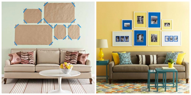 To hang your pictures on a wall without problems, you can have a trial run for your future composition using ordinary paper