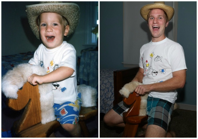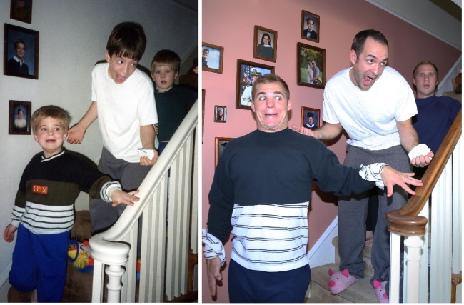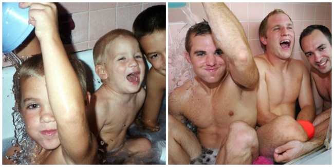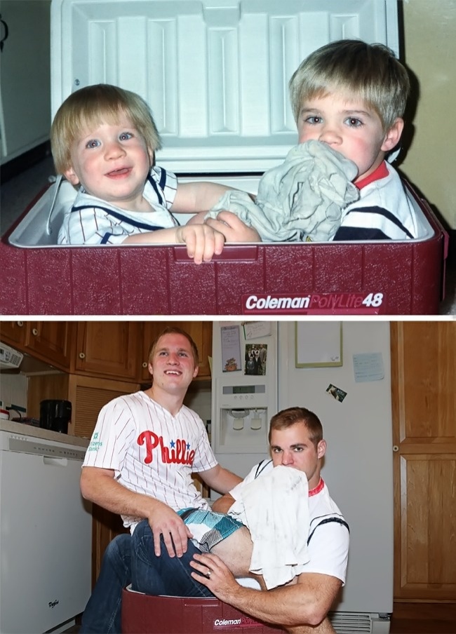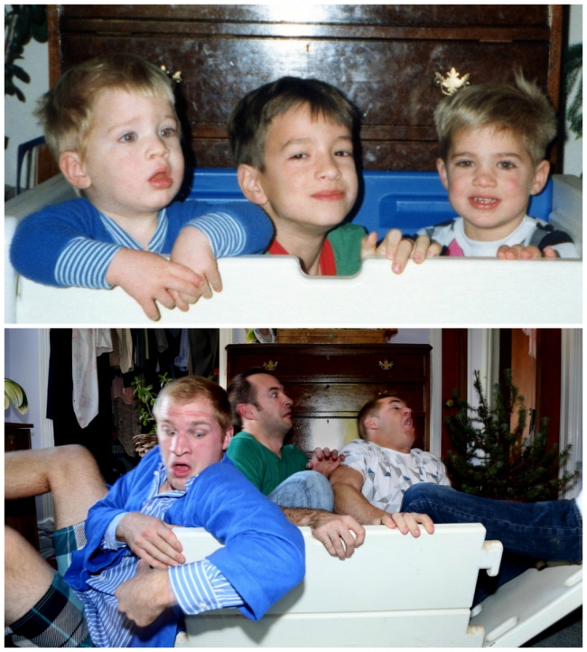 When three brothers from Philadelphia uploaded some images online that reenacted some of their childhood photographs, they spread around the Internet like wildfire. The three guys recreated some of the brightest and most joyous moments of their early years, and then they made a calendar that they gave their mom for Christmas. She was so touched by the gift that she felt like laughing and crying at the same time.