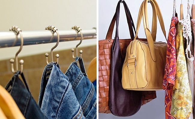 Organize your jeans with inexpensive shower hooks for a quick way to grab them in the morning. Hang them by the belt loop to avoid creasing. Find out more here.