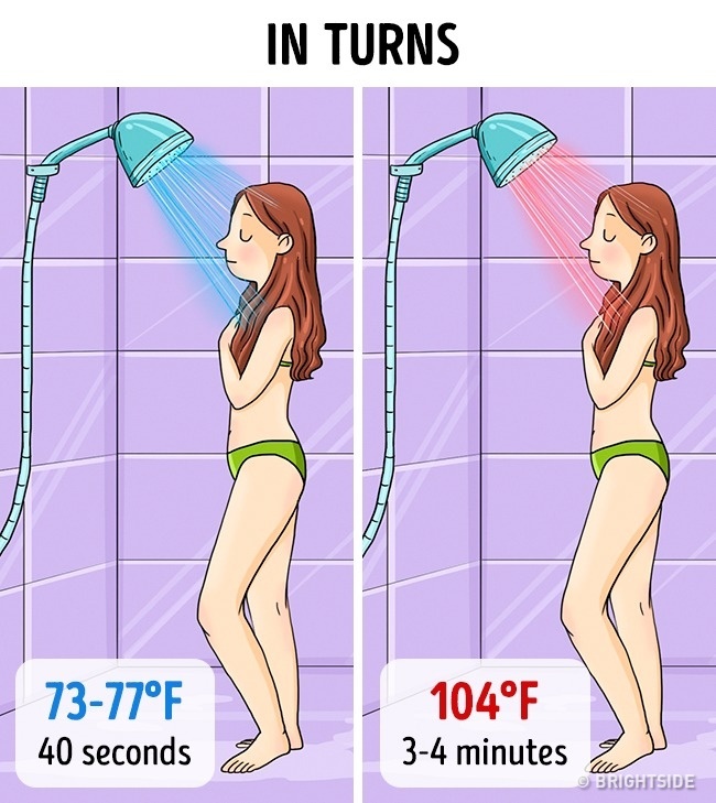 This method is quite simple and often accompanied by other procedures. When finishing a shower, make the water in turns icy cold and hot. Such a contrast shower will not only get rid of excess weight but also chase away such diseases as arrhythmia, obesity, vegetovascular dysfunction, primary hypertension, and cellulite. However, there are several contraindications as well.