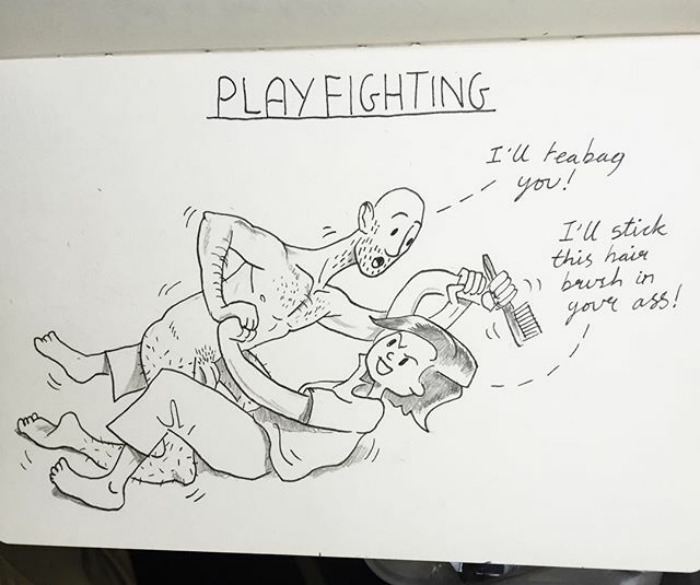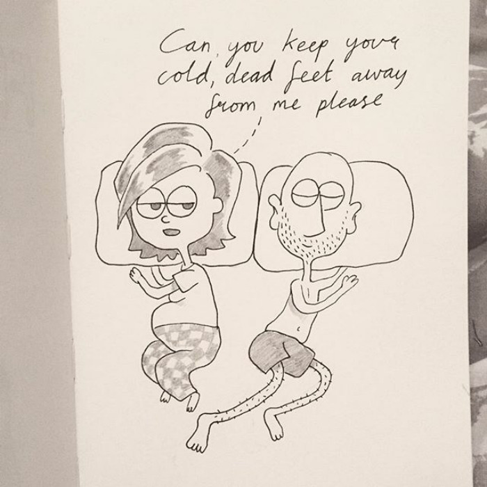 I think people follow us because our illustrations are a really honest and candid look at relationships and daily life. The situations we show are very relatable and sometimes the kind of things people don’t readily discuss. I think the followers also enjoy the combination of very sweet, tender moments interspersed with silly, crude humour.