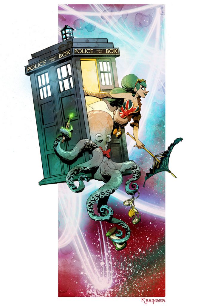 The main characters of these wonderful adventures are Victoria and her per octopus, Otto. “Everyone can relate to having a pet,” Kesinger says. “What I wanted to do with Otto and Victoria is to ask the question ‘What if your pet was an octopus?’ As soon as you do that you start to raise humorous scenarios like how hard would it be to housebreak an octopus when they’re inking everywhere.”