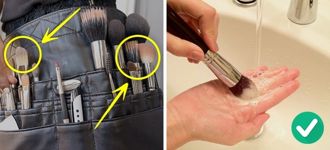 Regularly wash your makeup brushes