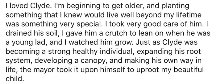 What would you do if the council ordered the death of one of your favorite trees, and then made you pay for it?