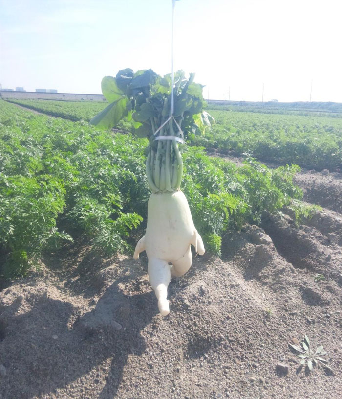 Sometimes, a radish is not just a radish. Sometimes a radish can appear to be striding purposefully into the distance. Similarly, a potato can sometimes be a bear, and sometimes a broccoli can appear to be doing some mansplaining. Of course, we’re taking about hilariously misshapen fruit and vegetables, which appear to have taken the form of animals, or seem to be doing things that humans do, or feel.