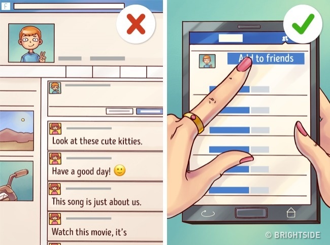7. Stay away from his social network profile, and write on his timeline as rarely as possible.