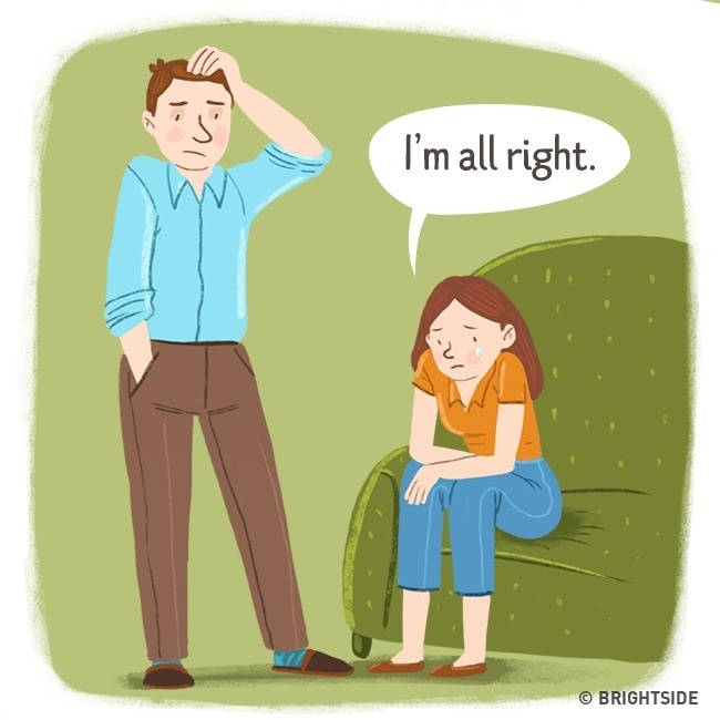 In most cases, when a woman says “I’m all right,” she really implies that she is anything but. However, men don’t always manage to interpret the situation correctly, which can lead to further stress. If you feel truly miserable, just say so right away. Sincerity will prove much more beneficial to your relationship.