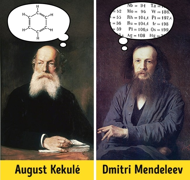 Dmitri Mendeleev, a Russian chemist, was obsessed with creating a periodic table of elements — and then he saw it in a dream. Something similar happened with the chemist August Kekulé when he dreamed of a formula for benzene.