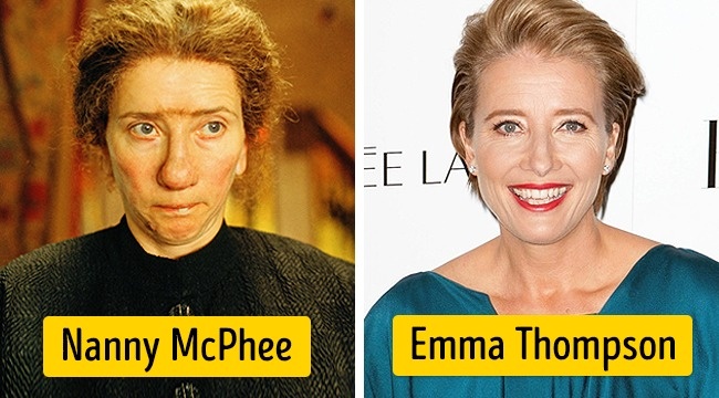 One of the most serious actresses in Britain, Academy Award winner Emma Thompson, unexpectedly transformed beyond recognition for two different characters: Professor Trelawney, from Harry Potter, and Nanny McPhee. When Emma was asked whether she’s afraid of appearing ugly on the screen, she replied, “If you want to look beautiful, be a model. An actress is something different.”