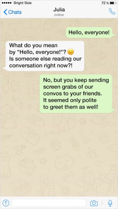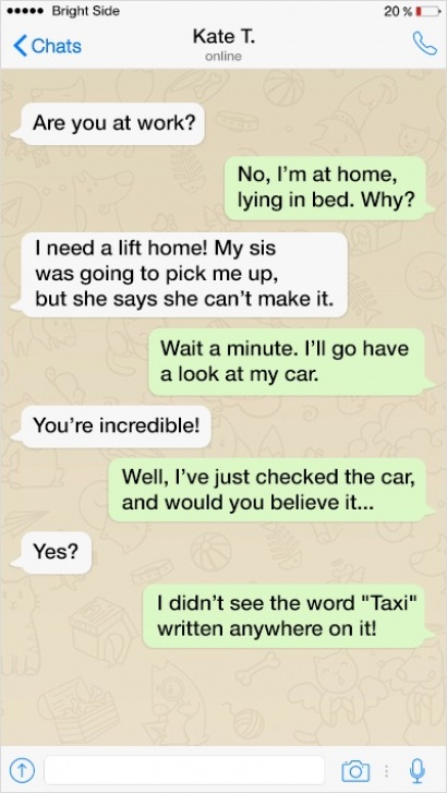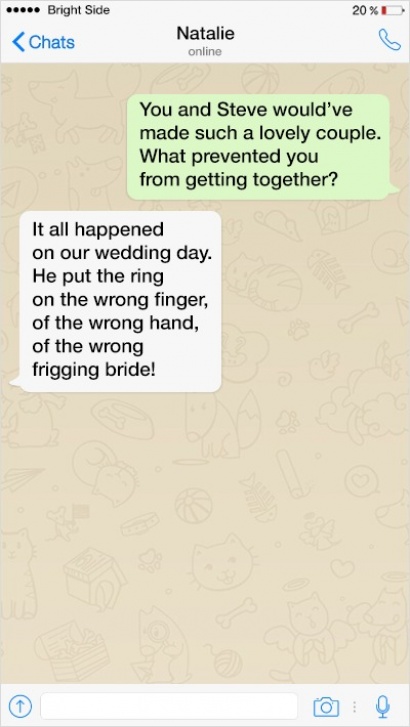 Sometimes simple text messages conceal a fully-fledged story, full of unexpected twists and turns. Reading them feels like watching a short movie with an unpredictable finale.