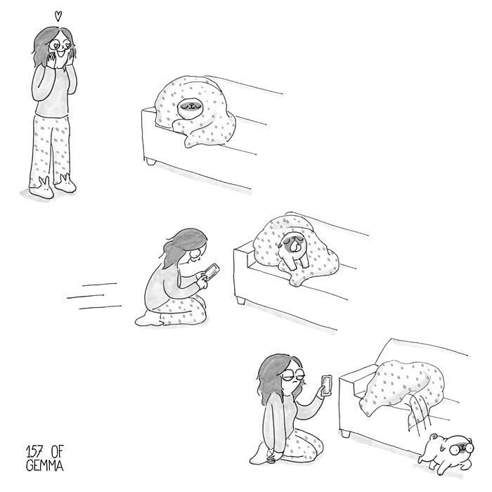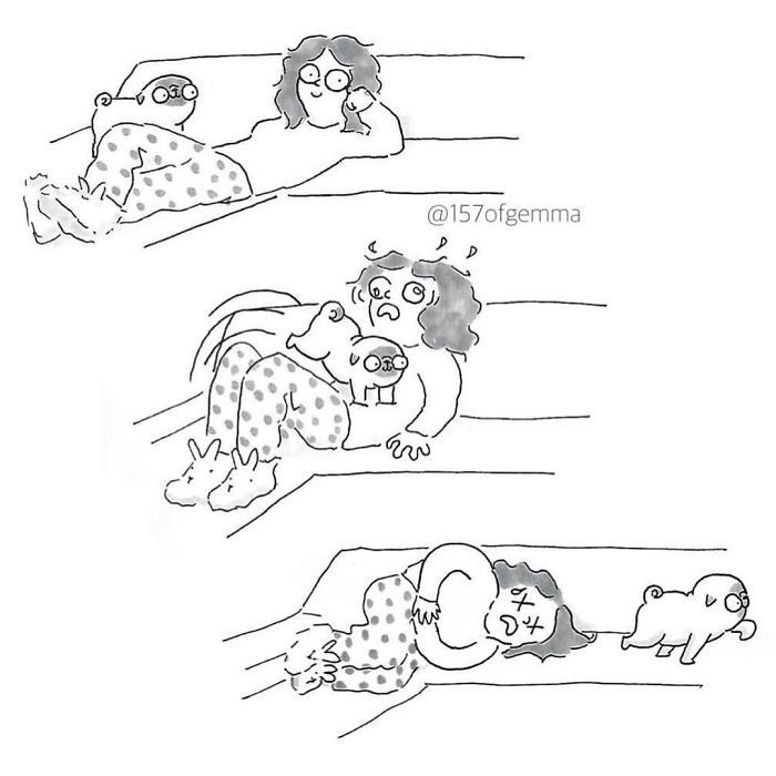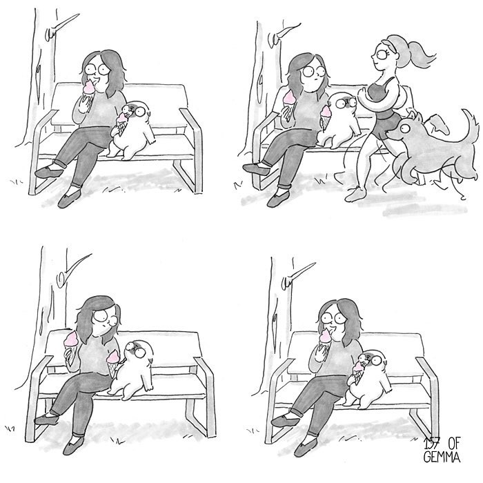 Gemma Gené is a multi-skilled artist from Barcelona, Spain, currently based in New York. Gemma draws, paints and creates sculptures, but she’s best known for her adorable comics that every dog owner relates to. The artist shows the special bond between a dog and the owner through cute scenes.