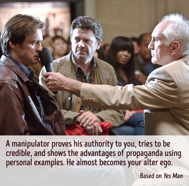 The main task of any manipulator is to put you into an illusory environment so that you won’t notice the manipulation but perceive it as a set of circumstances. For example, if you need to fire someone, first you’ll show that he’s a bad worker. Dismissal would seem natural if the work is done badly. Don’t get caught up in it. Evaluate your work performance from the side.