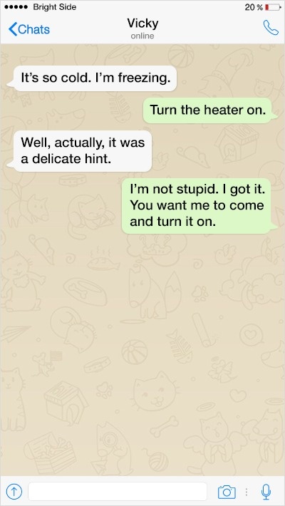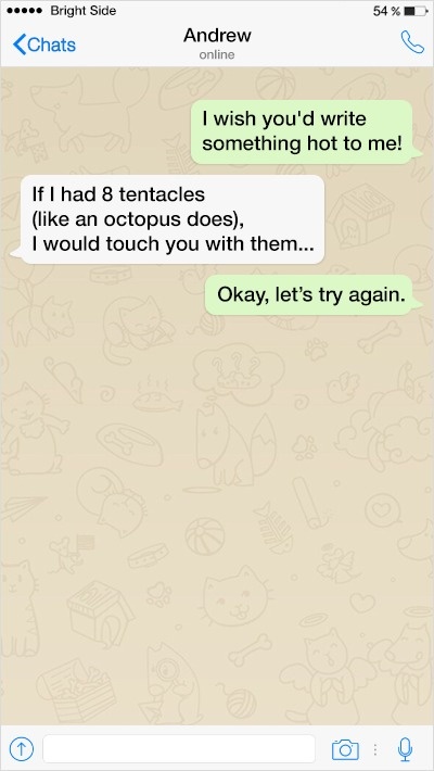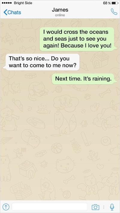 Romantic people often write messages that not only arouse warm feelings but also cause smiles and happy laughter. We collected 13 texts that could have been sent only by people who are in love. Do they ring a bell with you?