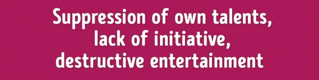 If parents frequently use such phrases as “Don’t be smart with me!“ or ”Stop daydreaming!” their child will have neither his own opinion, initiative, or leadership qualities. As an adult, they will probably drown their ambitions in alcohol and “fun.”