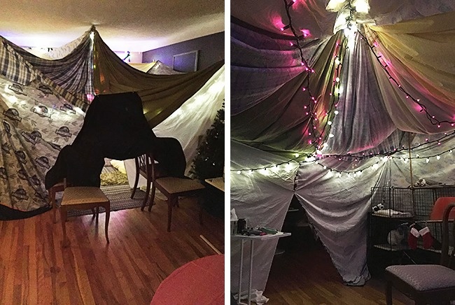 16. Today is my birthday. My husband built a blanket castle for me.