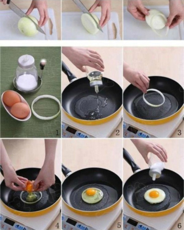 You can make a perfectly round fried egg without buying any special appliances or gadgets — all you need to do is to cut a ring from an onion and place it inside.