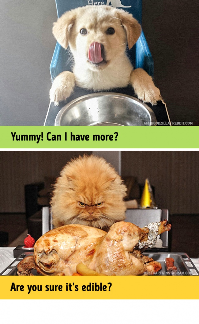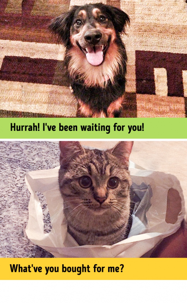 We collected photos that show how it feels to live with cats and dogs. Life with them can be very different, but never boring!