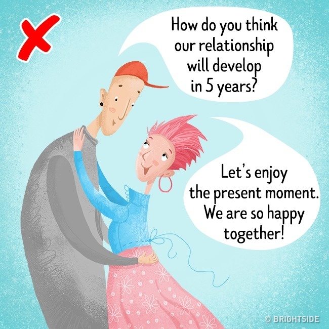 When freshly in love, young couples sometimes refuse to make common plans for the future. After their passion is gone, they have no idea what’s coming next and become frightened. In order to build a strong relationship, it is necessary to discuss future plans and not to avoid even the trickiest questions: children, finance, personal space, readiness for monogamy, etc.