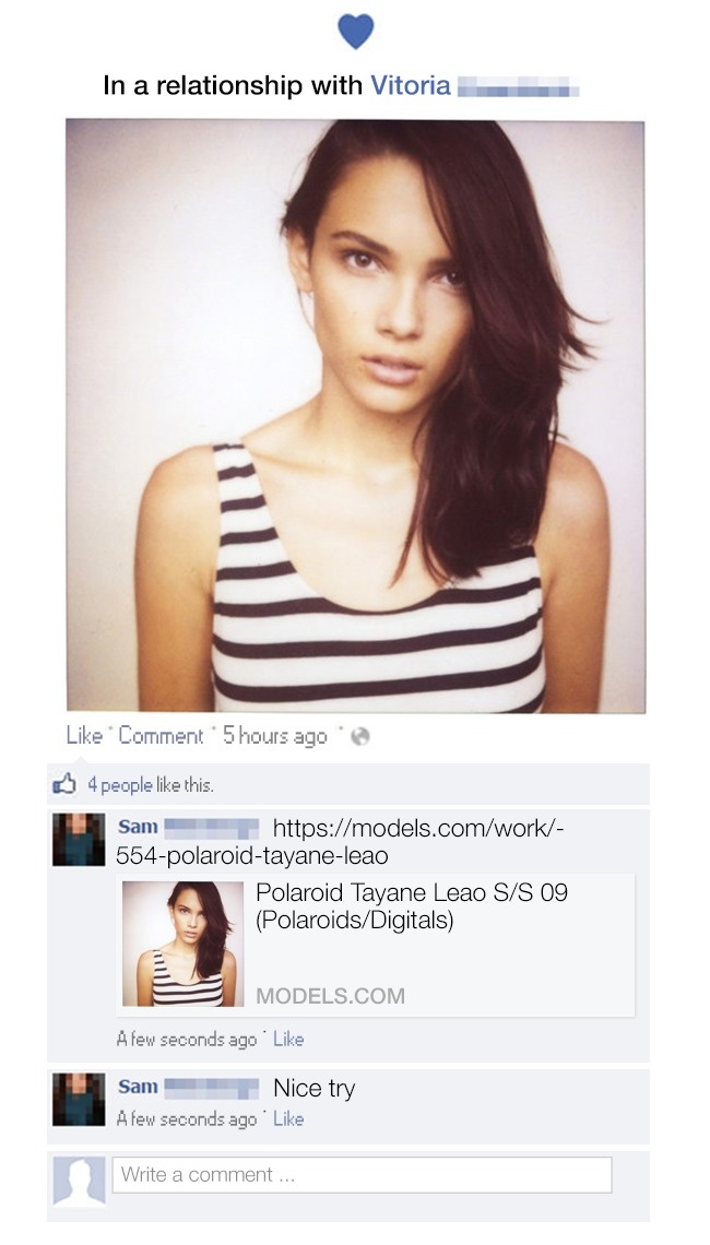 Wow, my girlfriend is a famous model. She didn’t tell me about that! What a lucky guy I am!