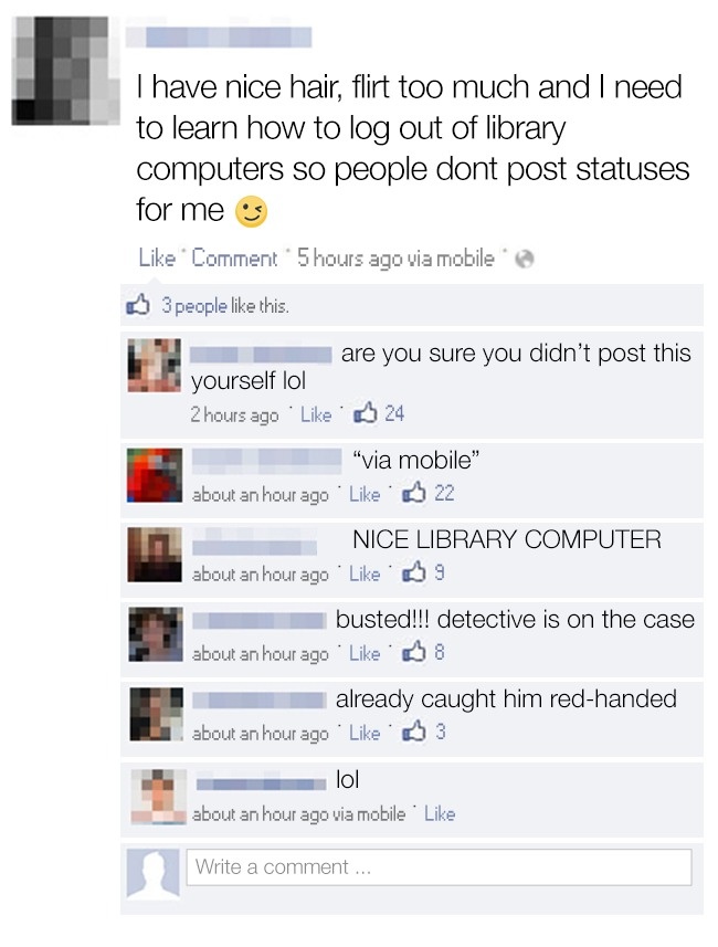 Well, libraries are super high-tech nowadays. A computer can absolutely pretend to be a tiny and slim “mobile” device. You know what I mean? You, with the fake Facebook profile picture…