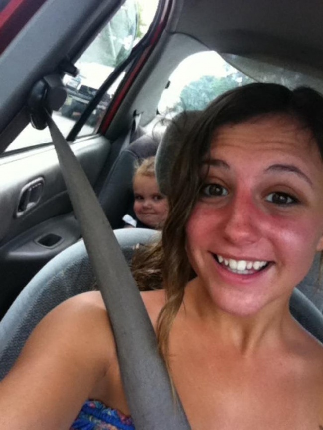 The baby in the background
