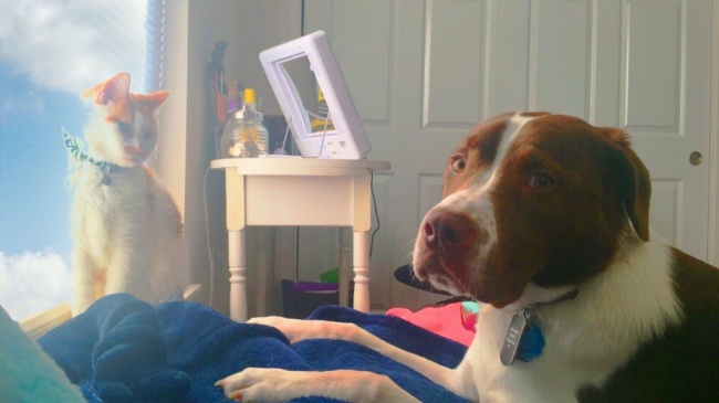 We were trying to take a picture of the cat, but the focus was on the kid.