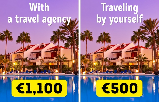 Traveling on your own (without travel agencies) is much more interesting and way cheaper. Yes, you have to remember that all the responsibility for any problems will be on your shoulders. However, travel agencies often can’t help in such situations anyway, so they blame the airlines, unforeseeable circumstances, the country you are visiting, and so on.