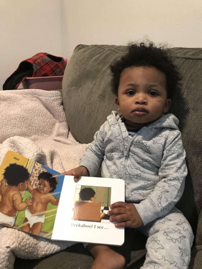 “My son looks like a real-life version of a character from the book he got for Christmas.”