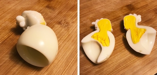 “Half of my egg’s yolk boiled outside of the shell into the shape of a chicken.”