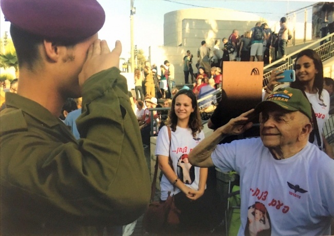 4. My holocaust survivor grandfather is proudly saluting his grandson, who just finished his training in the Israeli army, 70 years after being liberated from a concentration camp.