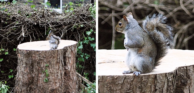 1. People chopped down the tree where this squirrel used to live. This is the first time it came home and didn’t understand what had happened.