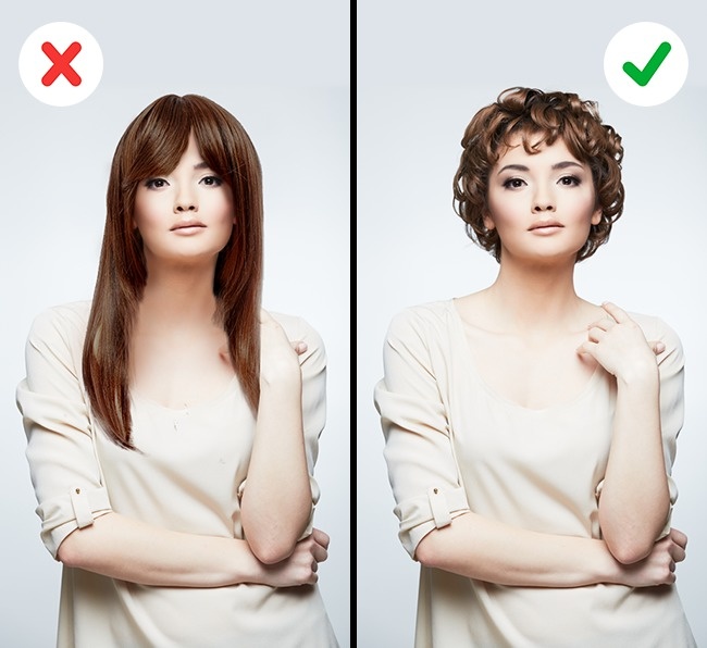 Voluminous and bouffant hairstyles can bring imbalance to your look. Give preference to medium length haircuts or shoulder-length bobs. Short haircuts look good when your neck is hidden under hair and hair near the ears is a bit lengthened. It’s also recommended to avoid hairstyles that are a bit too “creative.”