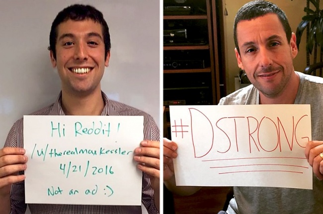 A 23-year-old Max Kessler one day saw that one of Adam Sandler’s character’s names was…Max Kessler. It surprised the young man doubly because he himself is incredibly similar to the famous actor. Max posted his photo on social networks with a sign that he is the real Max Kessler. The actor accepted this funny battle and even met Max in person.