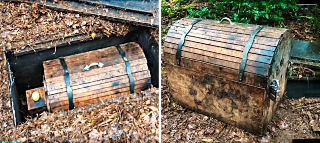 7. A group of metal detecting enthusiasts found a treasure chest in a forest.