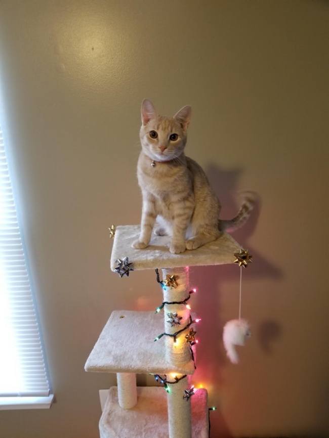 “We spent all our Christmas tree money on adopting this guy instead.”