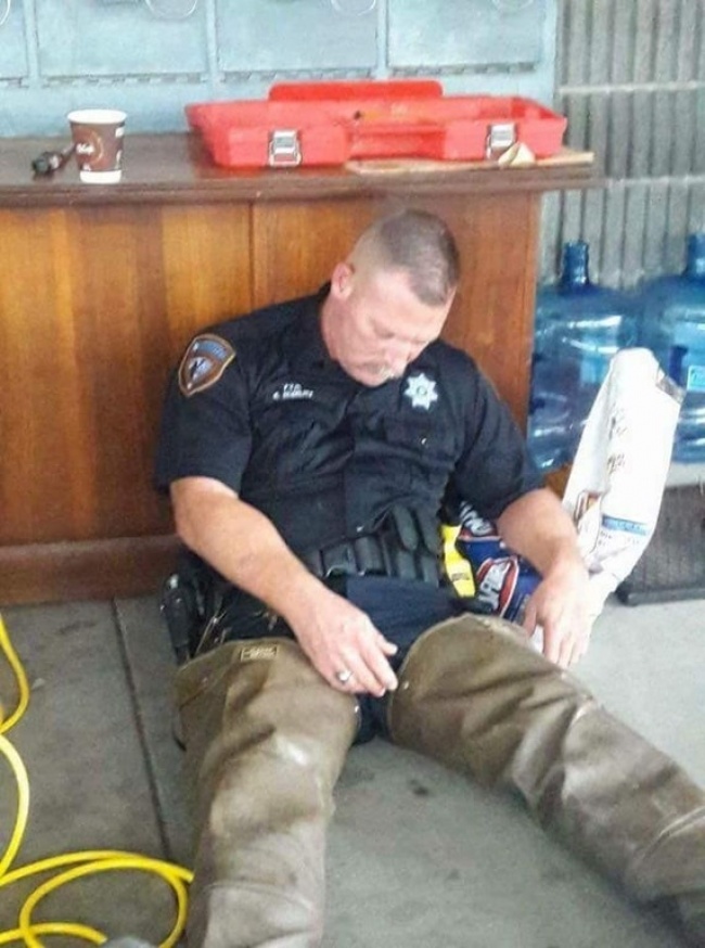 “This policeman worked countless hours helping victims of Hurricane Harvey until he passed out from exhaustion.”