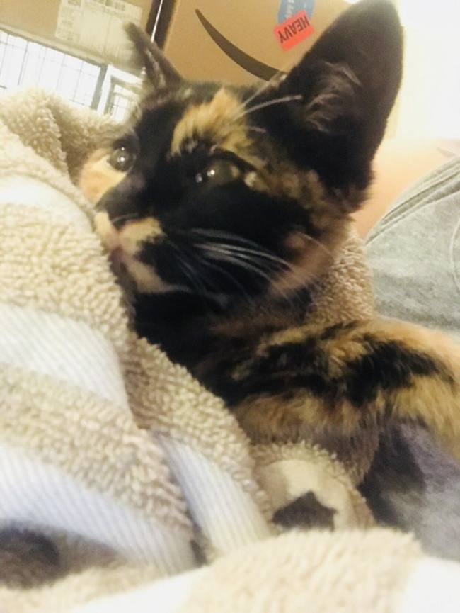 “So I went at 10:30 p.m. on Christmas to pick up my niece from the airport. The baggage claim employees told me someone threw away a kitten. They rescued her and begged me to take her home. She needs a name now.”