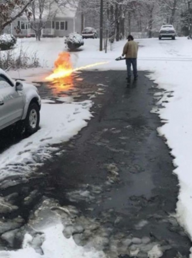 Because clearing the driveway with a plain shovel is too boring.