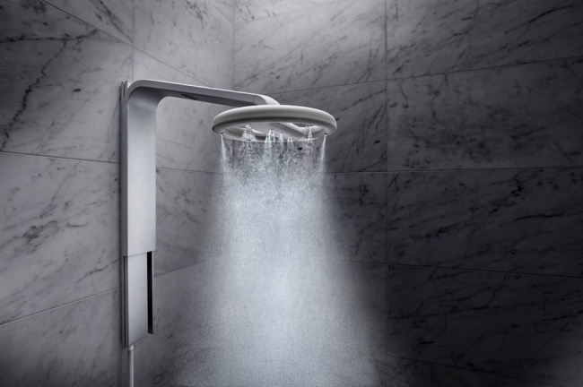 Nebia is a brand-new showerhead that atomizes water streams into millions of droplets, which creates the impression of a waterfall vapor shower. According to the company, Nebia can save 70% of your water. Unlike a common showerhead that takes 76 liters (20 gallons) for an average shower, Nebia uses only 23 liters (6 gallons).