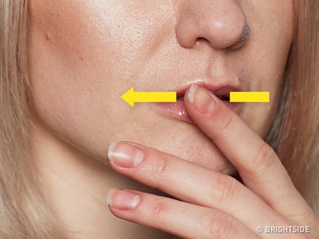 Swipe your lips with your index finger. This movement touches nerves located on the surface of the lips which stimulates the parasympathetic nervous system and helps you calm down.