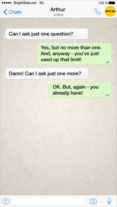 We are happy to present a collection of true text conversation gems. We hope you’ll enjoy them as much as we did!