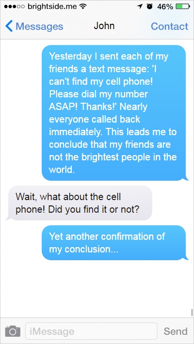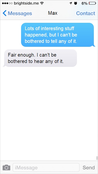 Today, we offer you a collection of text messages from people who are really good at describing what’s going on in just a few words!