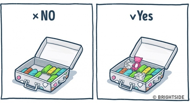 To prevent this, you should fill the empty spaces with small items of clothing or lumps of wrapping paper.