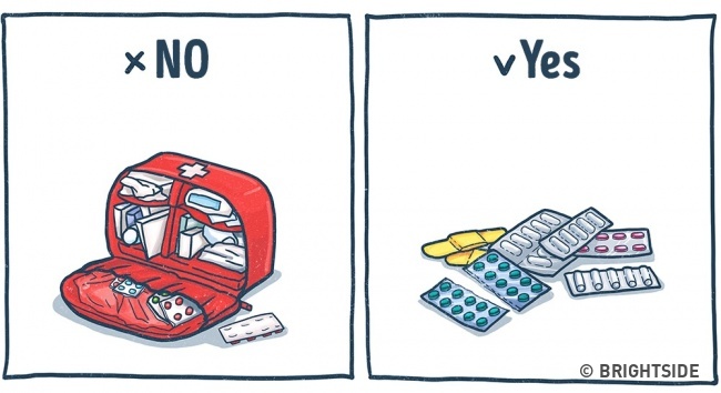 There’s no point in trying to fit the entire contents of your medicine cabinet into your holiday suitcase. Choose a more sensible approach by selecting only the most essential drugs. Don’t pack more than one pill sheet of each type of medicine — this will suffice to deal with any emergency.