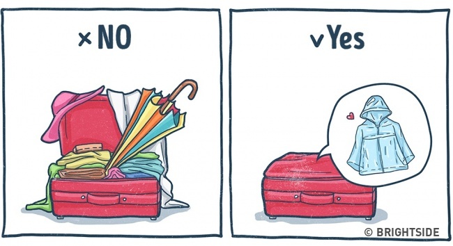 If you happen to own a large umbrella — leave it at home! Pack a raincoat instead, because it’ll take up much less room in your suitcase. In fact, we advise you to buy several disposable raincoats before going on holiday to give you enough protection from bad weather. And once the rain is over you can simply throw it away!