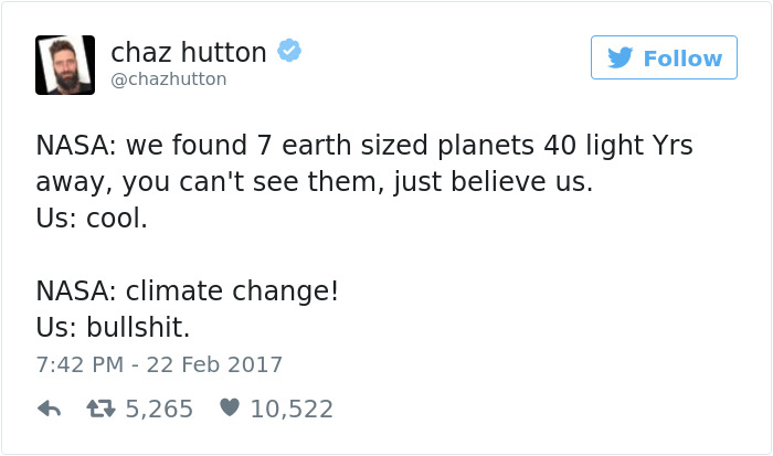 When the news broke yesterday that NASA has discovered 7 new Earth-like planets, the good people of Twitter were understandably shook. Their reactions were everything from hilarious to straight-up trippy.