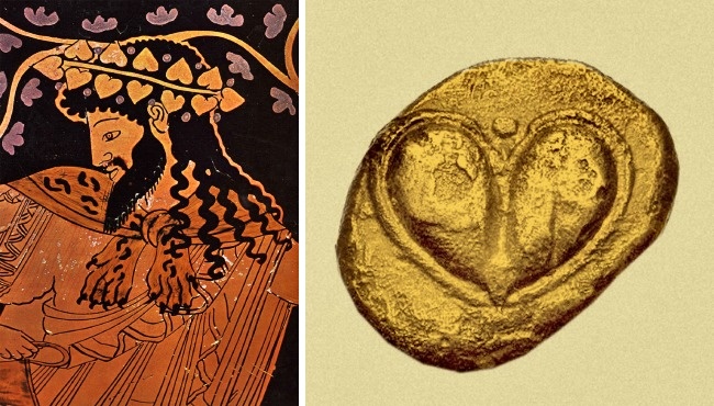 - There is also a theory stating that this symbol represents the shape of an ivy leaf. On their vases, the Greeks usually included ivy leaves in drawings that portrayed Dionysus — the god of winemaking and patron of passion.