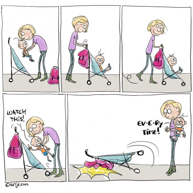 Meet Liesbeth Ton — an illustrator and greeting card designer from the Netherlands. She has three children, and her comics about the various challenges of being a parent read like an autobiographical novel. To celebrate 10 years of motherhood, Liesbeth has published a collection of her best works. These hilarious comic strips tell stories that are oh so familiar to every parent in the world. We can certainly relate to each and every one of them!
