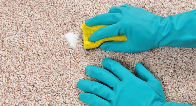 To easily erase beer, wine or liquor stains from the carpet, rub them with a solution of warm water with little washing powder. Then wash it off with a mixture of 1 teaspoon of vinegar and 0.5 liters of warm water.